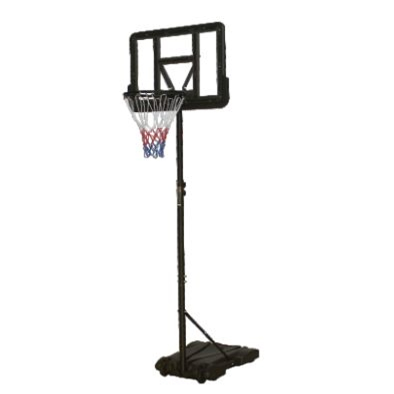 - RimInner Dia.: 39cmBackboard Size: 71 x 45 m (28 inches)Base Size: 74 x 55 x 13cmSteelTube Dia.:45mmNet material: weather resistance nylonAdjustable Height: Min 1.79m, Max 2.13mMaterial: Steeltube + PE+PC backboard + PE base + SteelrimPortable built-in wheels, can be easily moved on a certain lea